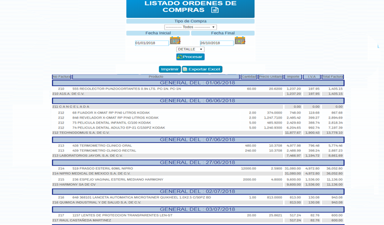 Listado de Ordenes de Compras