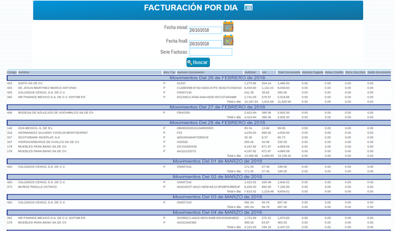 Facturación por día