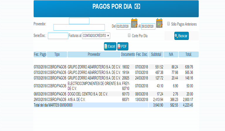 Pagos por día