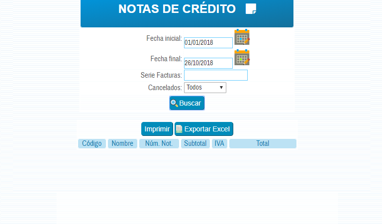 Notas de crédito consultados por fecha