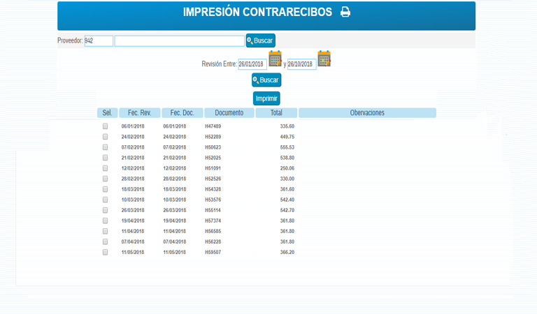Impresión de Contra Recibos.