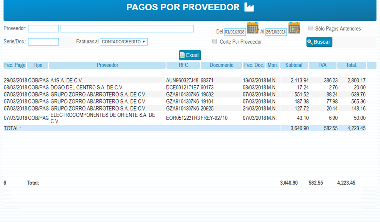 Pagos a Proveedores