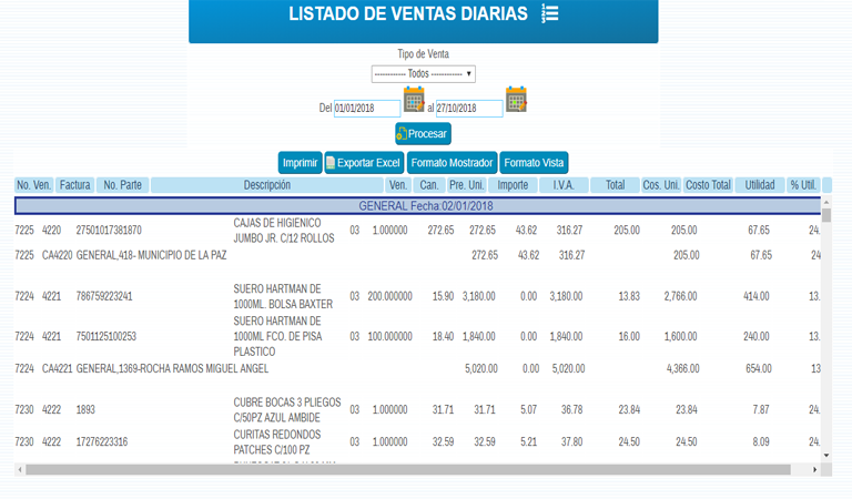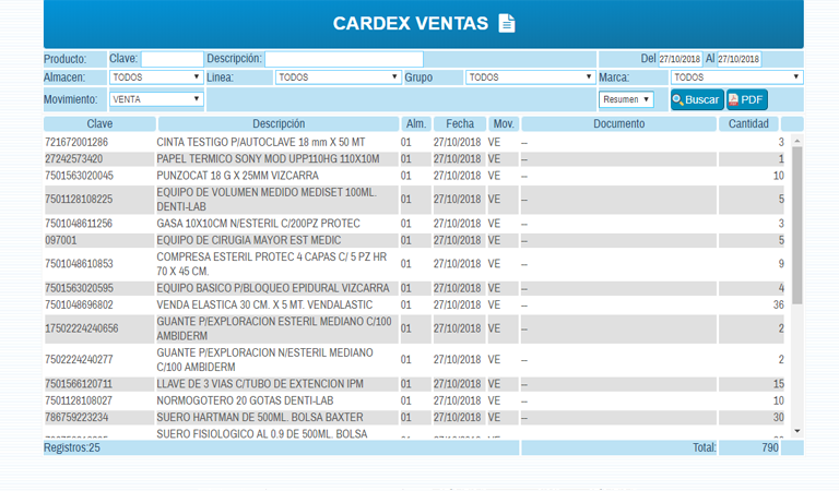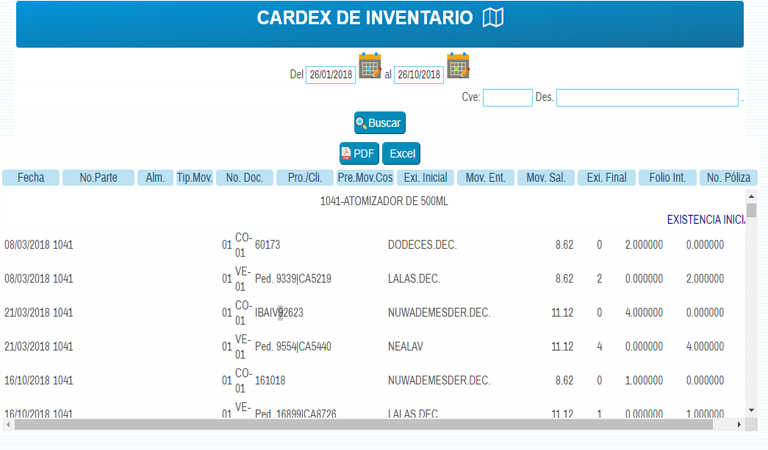 Todas las operaciones realizadas en el modulo cuentan con la emisión de un reporte que puede ser filtrado según tus necesidades.