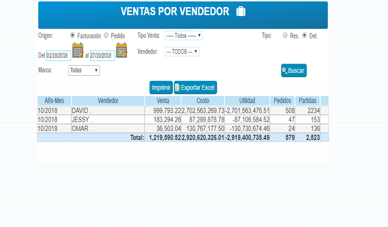 Listado de Ventas por Vendedor.